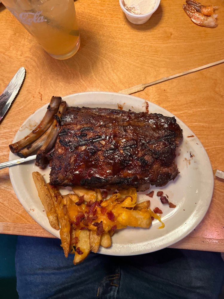 Very juicy and flavorful from the marbling throughout the steak along with slow cooked ribs in a unique blend of seasonings and our signature BBQ sauce